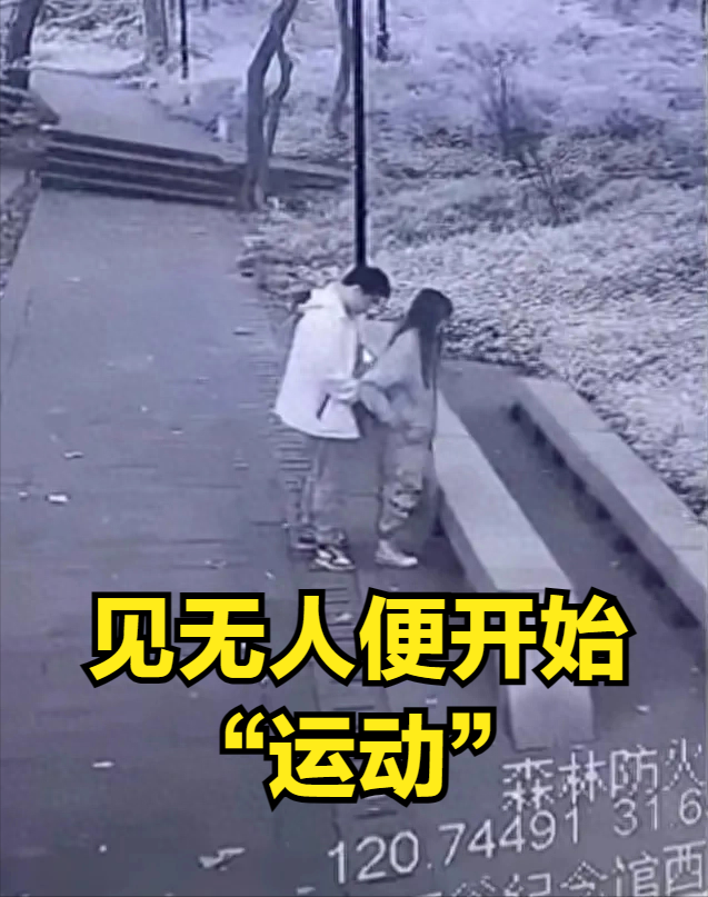 本以为两人只是简单的散散步,但接下来两人的举动真是让人大开眼界。他们来到了一张石凳面前,然后女生开始宽衣解带,对自己男友开始了小打小闹,接着就大胆的做起了“运动”,场面十分的辣眼睛。